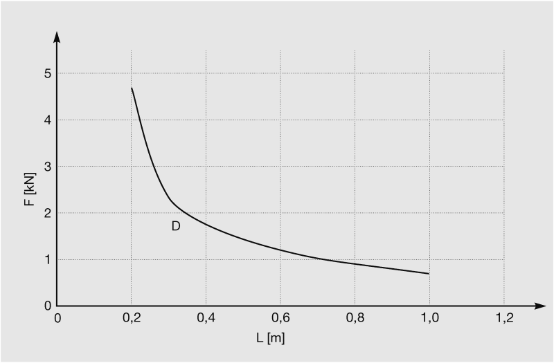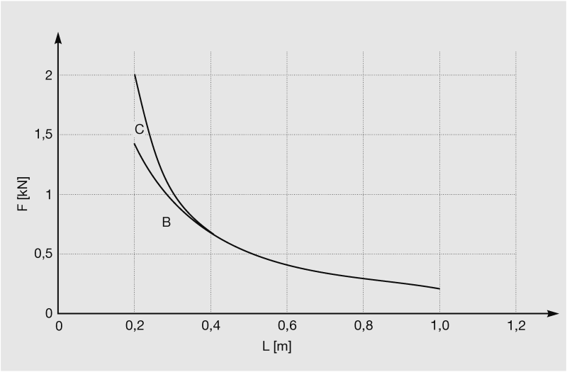 Restrikce σzul ≤ 160 N/mm2 fzul ≤ L/100 für L > 300 mm fzul ≤ 3 mm für L = 200 ... 300 mm | Zatížení kotev A = 1,5 kN B = 2,5 kN C = 3,5 kN D = 6,0 kN E = 9,0 kN | |