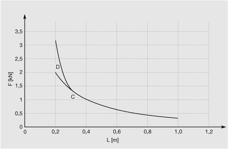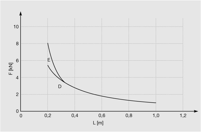 Diagram zatížení při kombinace s lištou montážní 41/62/2,5 D