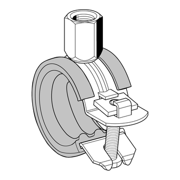 Jednodílná objímka s dvouzávitovou upínací maticí M8/M10 pro upevnění potrubí TZB. Vhodná pro montáž na zeď, podlahu či strop a pro zvukově izolované upevnění trubek, a to i v případech, kdy je požadována izolace dle DIN 4109. Objímka je opatřena rychlouzávěrem, který šetří čas.